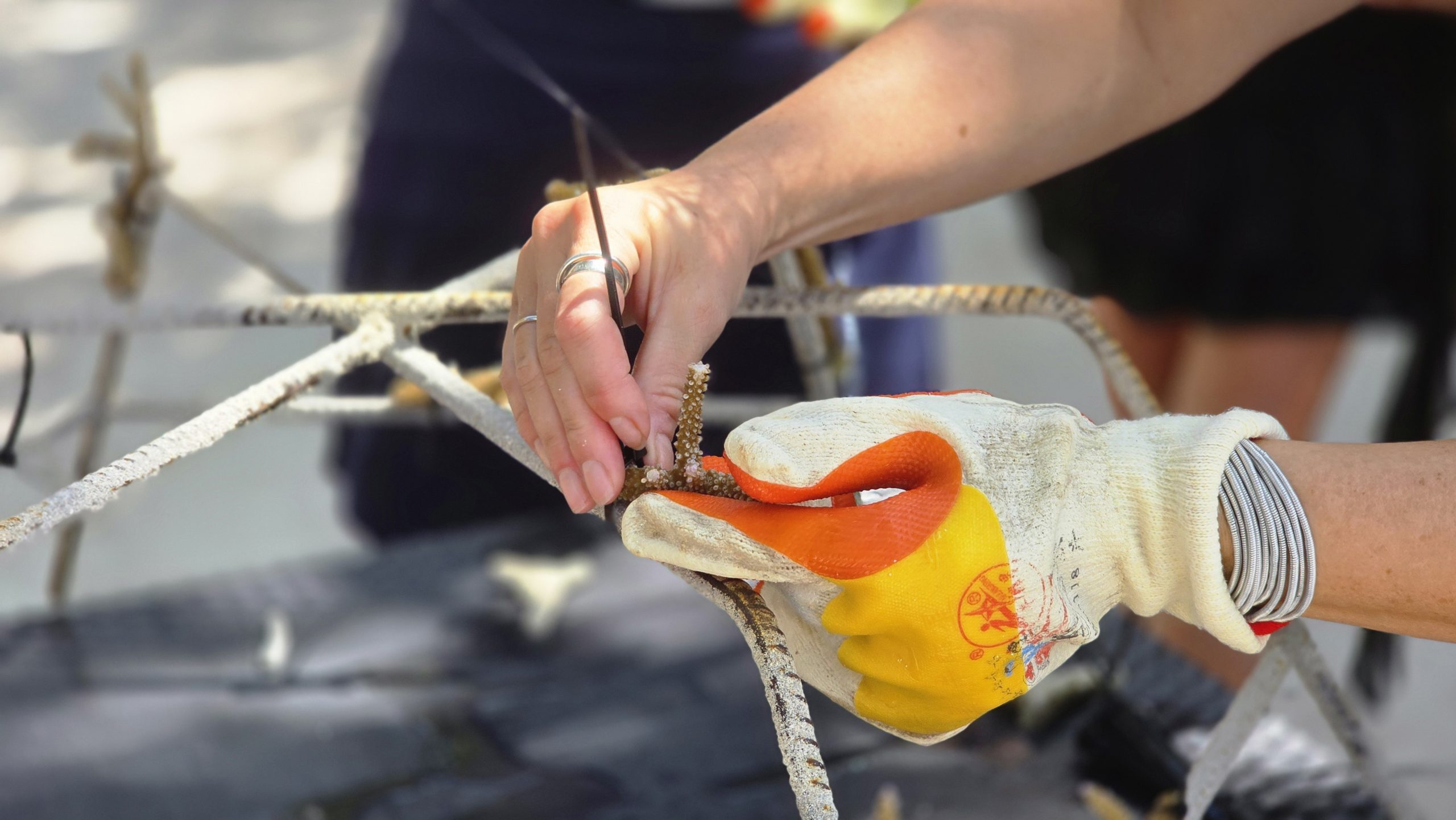 At the heart of the initiative is a gentle and nature-led method using “fragments of opportunity” — naturally broken coral fragments that are collected and carefully secured onto coral frames to encourage healthy regrowth. These fragments are stabilised in an environment that supports their development, allowing new coral to establish and flourish over time.