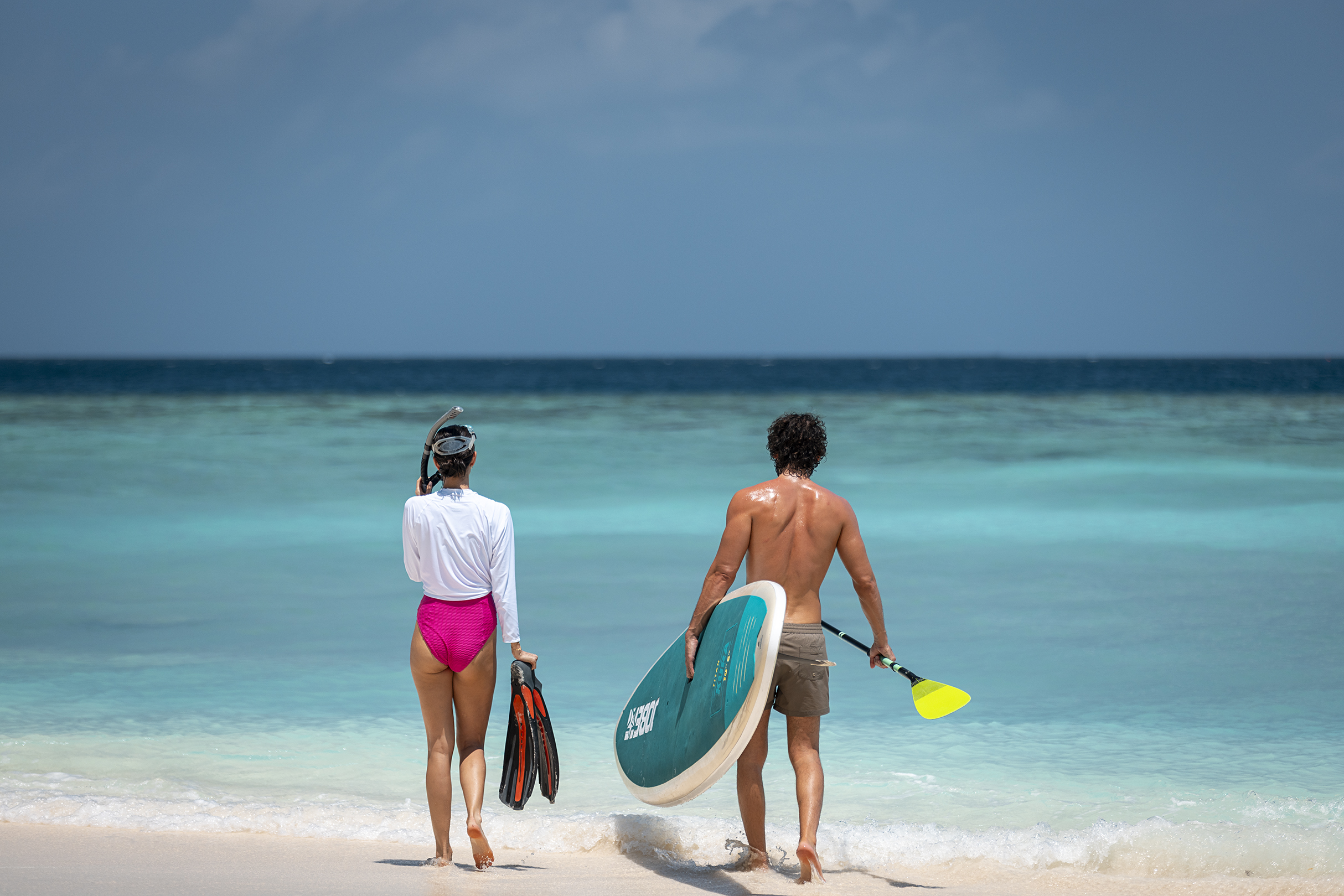 At SAii Lagoon Maldives, Curio Collection by Hilton, the day begins with a sunrise couple’s fitness run along the shoreline, followed by guided snorkelling experiences and pool-based wellness sessions. As the pace builds, playful activities take centre stage, including aqua zumba, beach and pool volleyball, water polo and a light-hearted couple’s “Amazing Race” around the island.